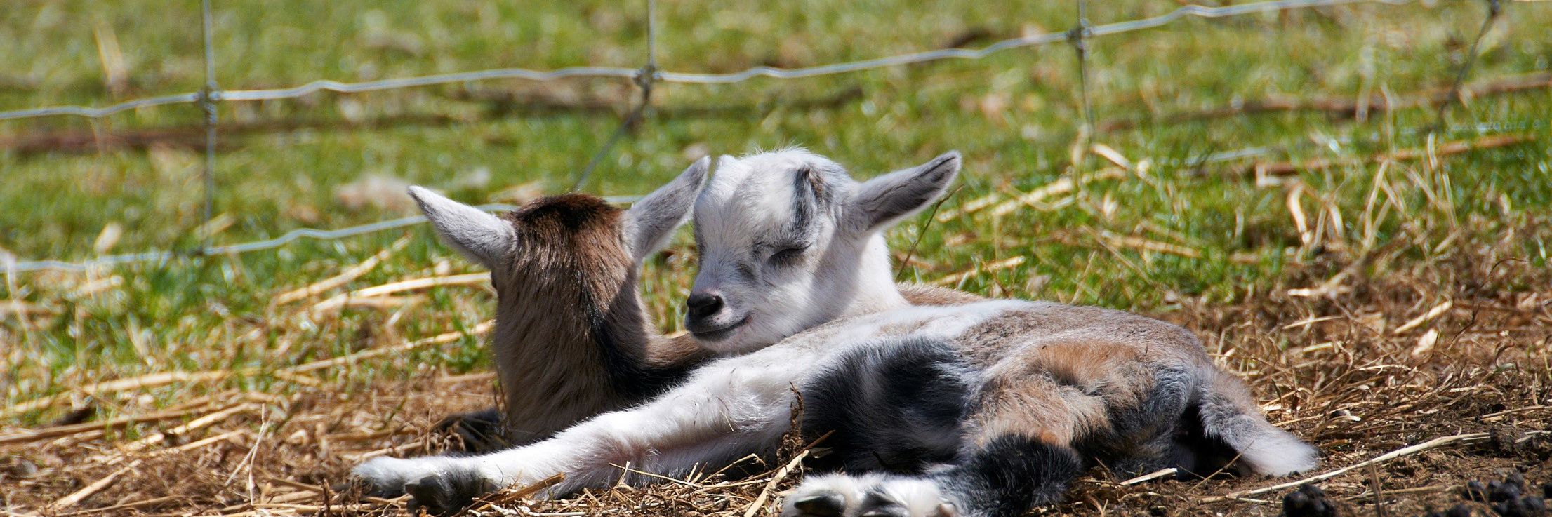 Får og geder har en stor indhegning, som vi kan gå ind i. Her er det også muligt at sidde på en bænk og iagttage dyrene og den smukke natur.
